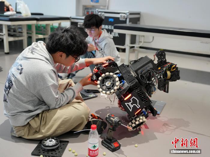 图为参赛选脚正在赛前调试建造。中新社记者 安源 摄