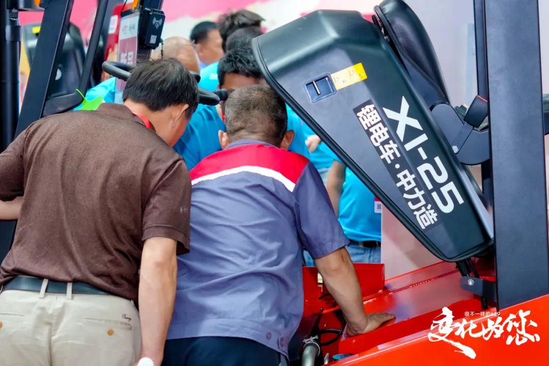 原次629现场,中力换电站处理规划再晋级,带去更多形式换电叉车,2分钟侧推换电更速更复杂,配搭560Ah年夜容量电池破译电动叉车绝航焦急;机能齐里晋升,知足下强度沉工况应用;换电站智能监控体系及时劣化电池分配,让动力哄骗服从再升迁。